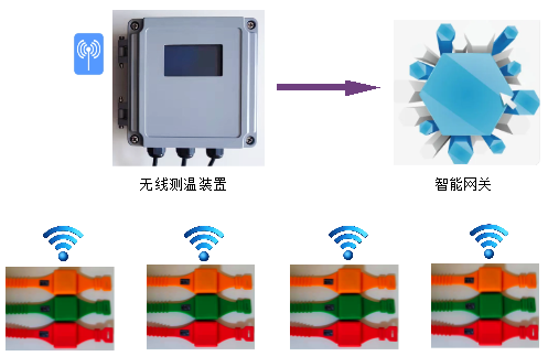 Wireless temperature measuring device is an intelligent device integrating wireless temperature receiving, temperature data recording, temperature data analysis and real-time data uploading. The device can be displayed and set according to the actual installation of wireless temperature sensor points, provides three RS485 interfaces, standard Modbus communication protocol, convenient connection with the electric power automatic monitoring system and intelligent gateway, can realize the real-time monitoring of the temperature of the electrical node and overtemperature alarm.